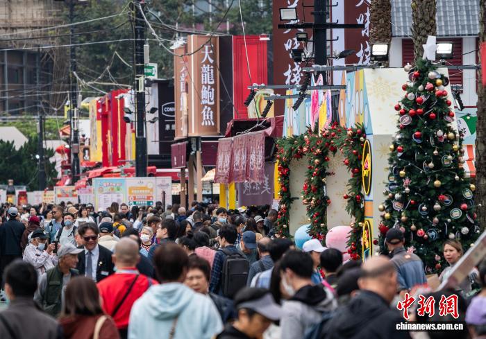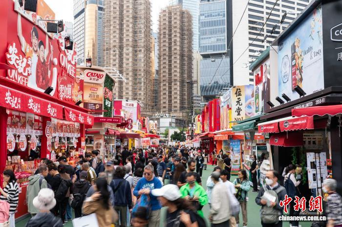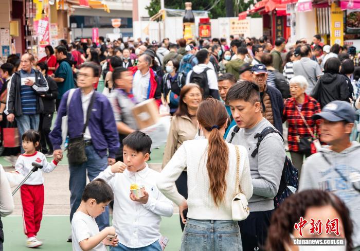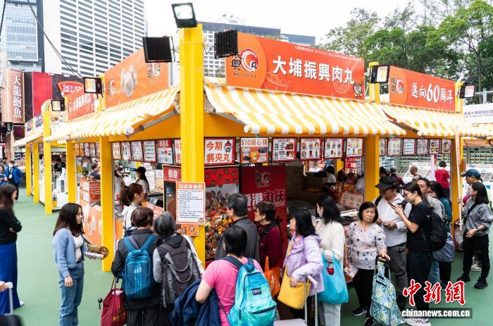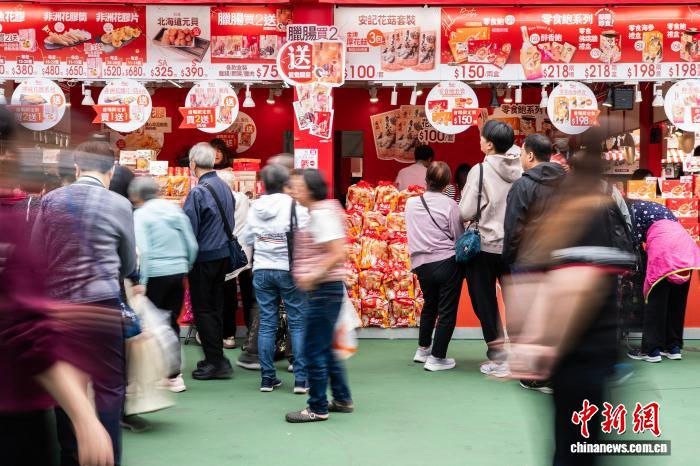 图为市平易近正在喷鼻港年夜埔特点产物摊位列队收购。记者 侯宇 摄